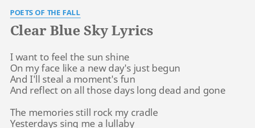 Out Of The Clear Blue Sky Lyrics - Beatsteaks Under A Clear Blue Sky Lyrics Genius Lyrics / Mr blue sky please tell us why you had to hide away for so long?. Original lyrics of clear blue sky song by skylar grey. Sat, 10 oct 2020 02:44:09 +0000. Out of the clear blue sky. If something happens out of a clear blue sky, it happens completely unexpectedly, with no warning. The lyrics go on to describe the memory of the blitz: